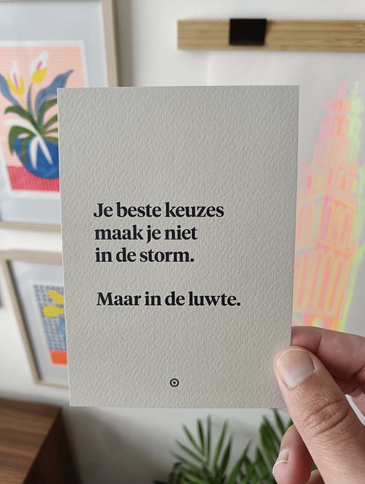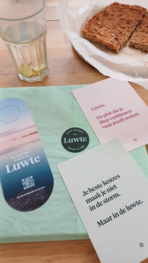Uitpakken is een feestje. Luwte is mooi verpakt en je krijgt er een speciale Luwte-deurhanger en ansichtkaarten met daarop rake quotes bij.