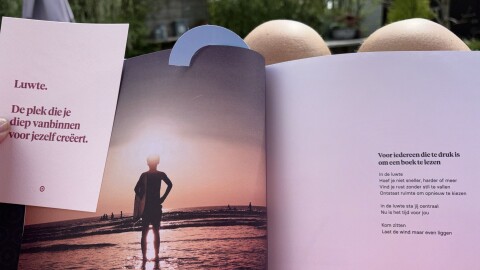Rust moet je voelen. Je kunt een e-book niet voelen. Een audioboek ervaar je intenser dan een e-book, maar je voelt meer met papier tussen je vingers, het gewicht van het boek, de geur en het geluid van de pagina's, de vriendelijkheid van een zacht leeslint. Luwte vraagt om vertragen. Een moment zonder notificaties, ruis en afleiding. Het is daarom bewust analoog, zodat je echt even kan ontkoppelen en landen.