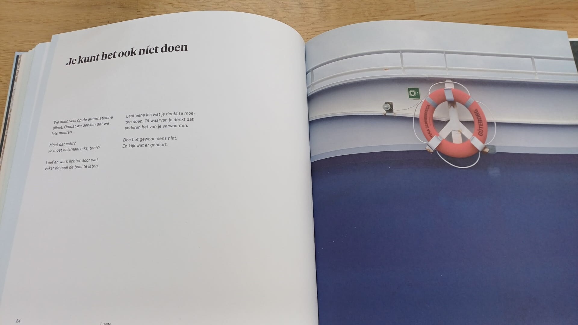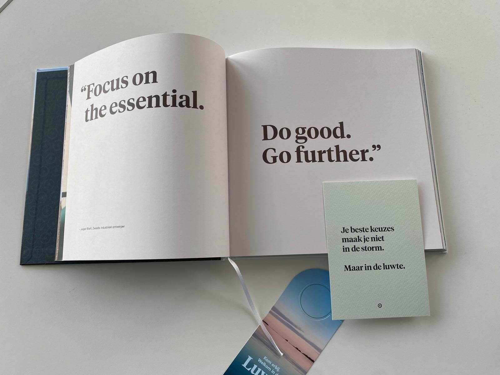 Dit is geen boek om in één ruk uit te lezen. Luwte is een object om bij te vertragen. Elk detail is gekozen om de belofte van rust en eenvoud tastbaar te maken.