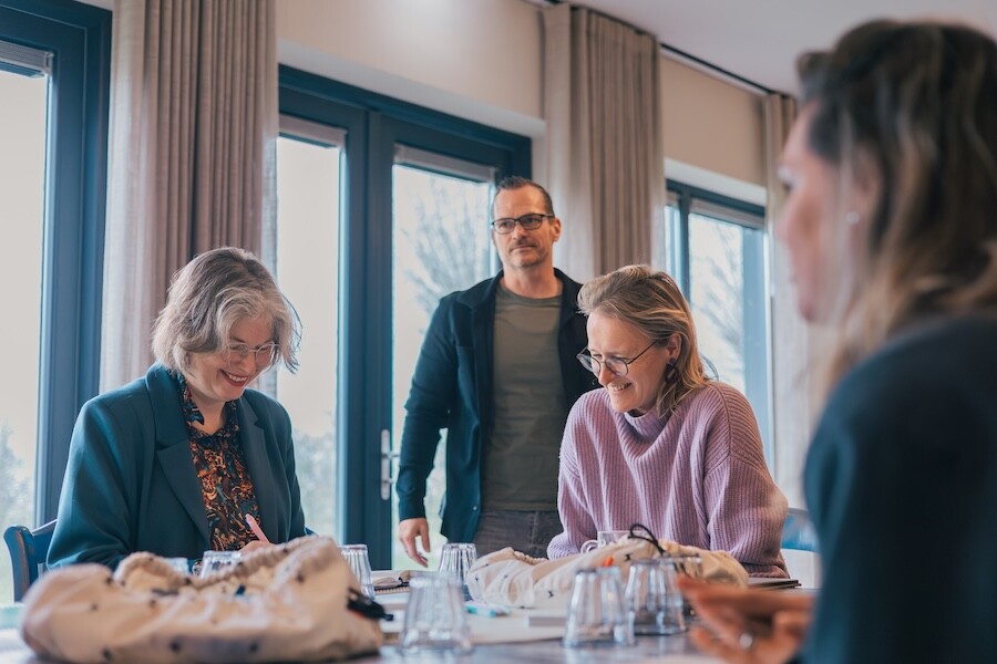 Je werkt aan je eigen vraag. Ik support je. En de groep is er om je denken te scherpen, niet om het over te nemen.