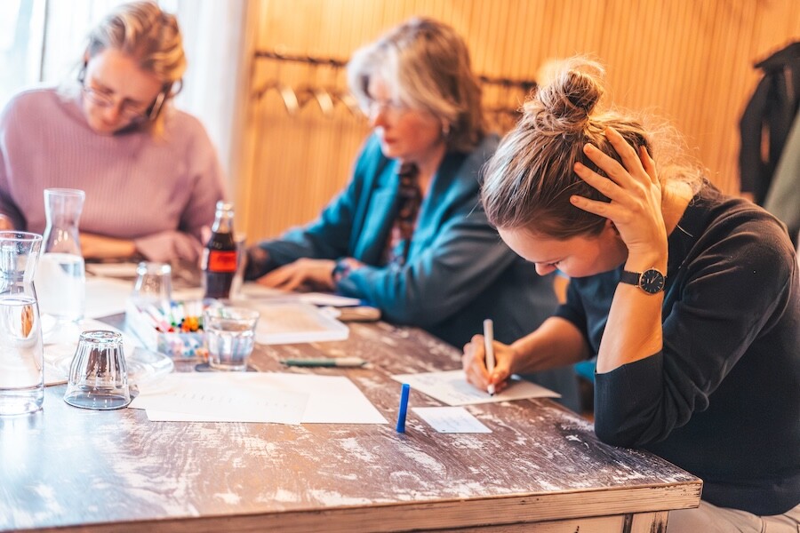 Met gerichte vragen en speelse opdrachten werk je aan je eigen bedrijf. Je denkt, schrijft, bouwt, wandelt en reflecteert. Je wisselt uit met andere ondernemers, allemaal op zoek naar rust, focus en richting.